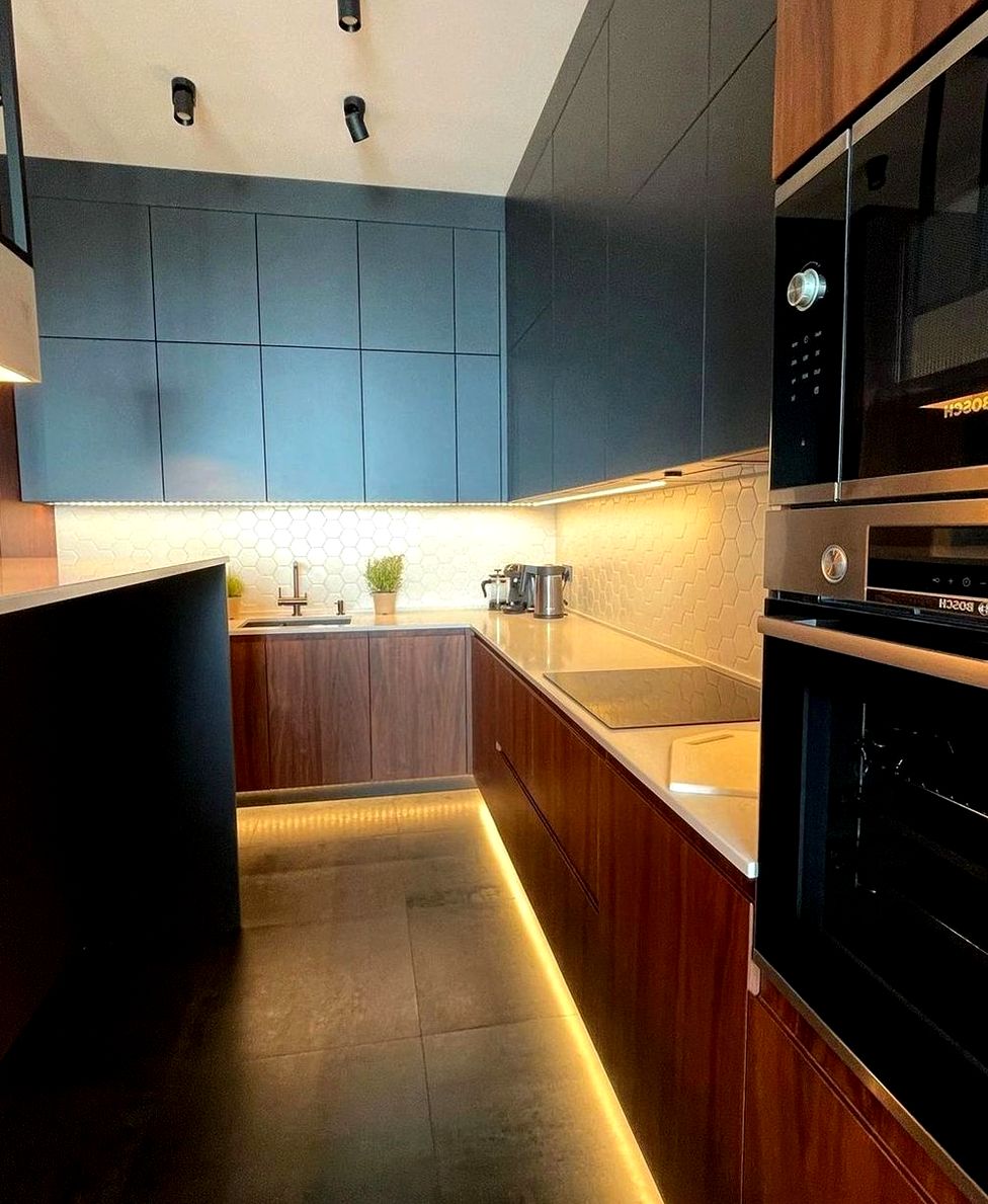 П-образная композиция, фрезерованный МДФ, матовая эмаль отделка. Мягкая классика, уют, аккуратные рамочные фасады без перегруза