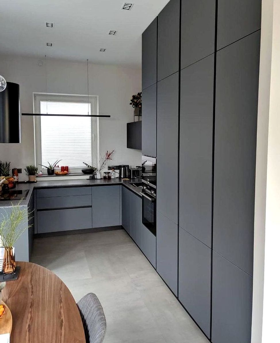 Угловая композиция, МДФ в пленке, супермат отделка. Эргономичная планировка, много хранения, актуальный городской интерьер