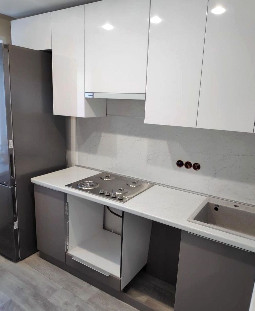 Прямая композиция, МДФ в эмали, матовая отделка. Чистые линии, спокойная геометрия, аккуратный премиальный вид