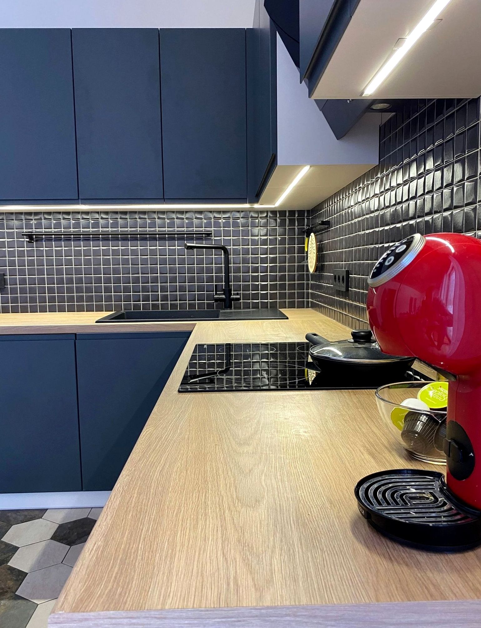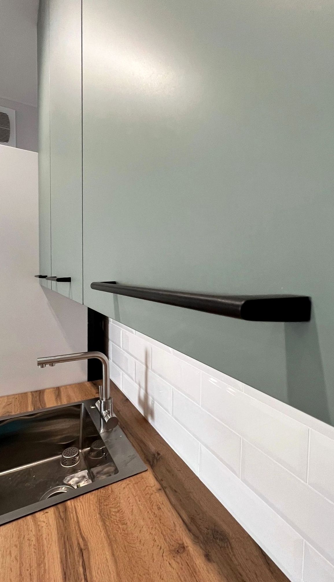 Прямая композиция, МДФ в эмали, матовая отделка. Чистые линии, спокойная геометрия, аккуратный премиальный вид
