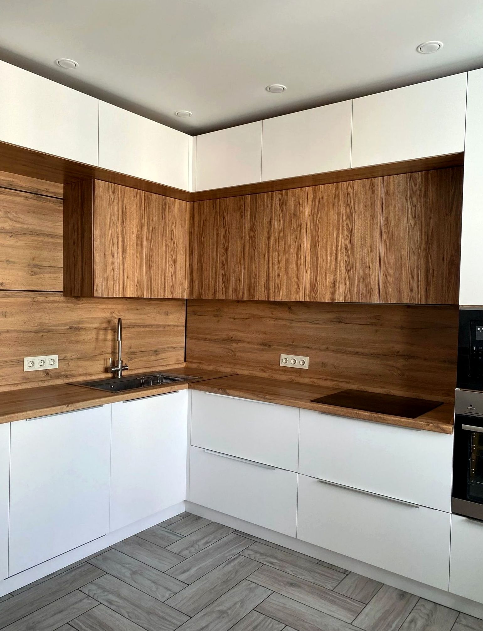 Островная композиция, шпон / эмаль, комбинированная отделка. Просторная композиция, статусный вид, удобная рабочая зона и остров