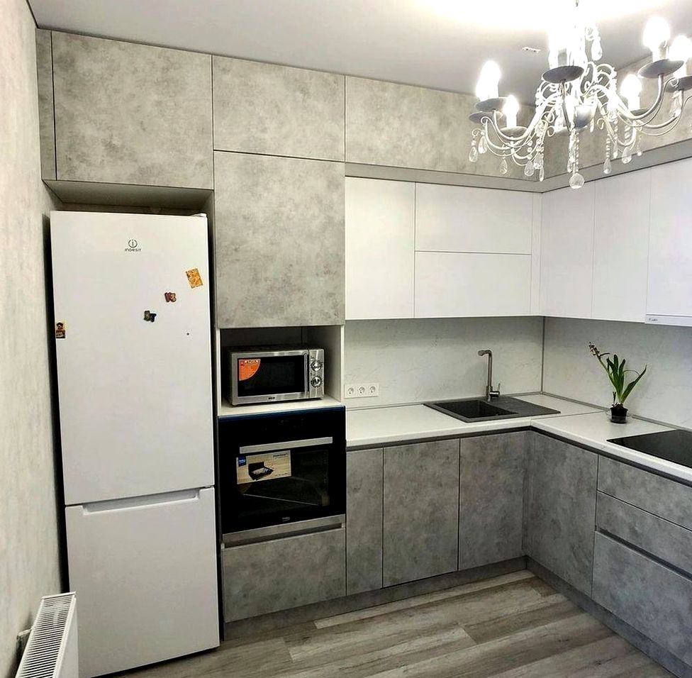 Островная композиция, шпон / эмаль, комбинированная отделка. Просторная композиция, статусный вид, удобная рабочая зона и остров