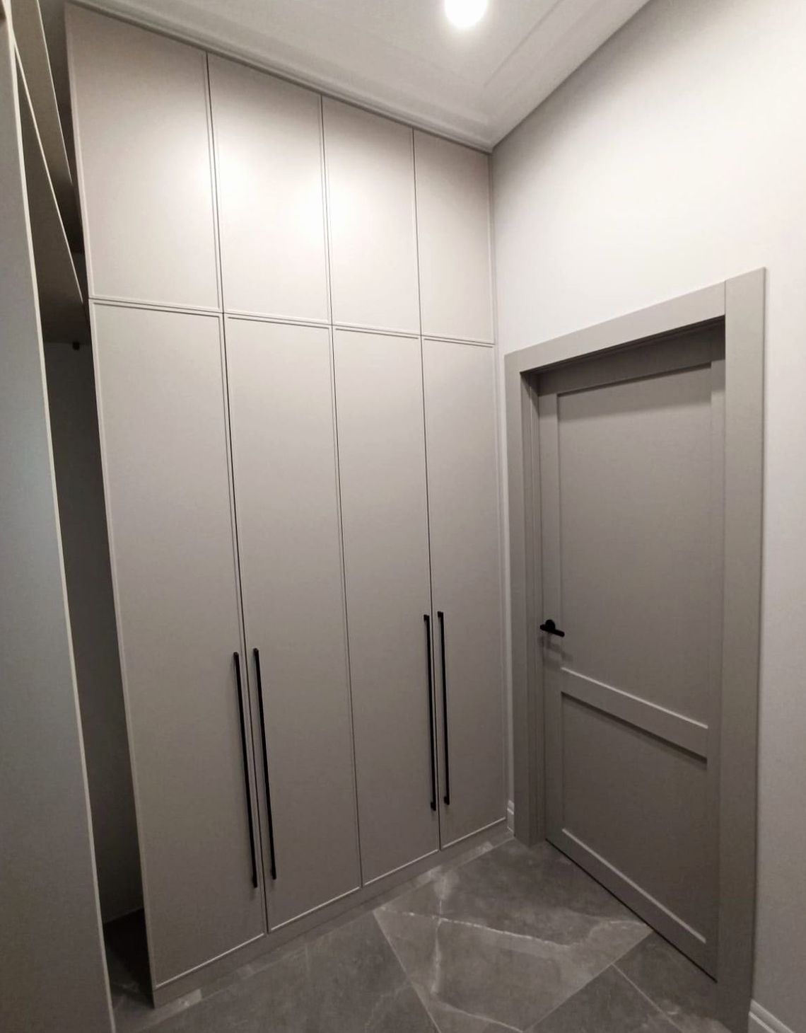 Встроенный шкаф, двери купе, наполнение: полки, штанги, антресоль. Максимум хранения без перегруза пространства, аккуратное встраивание в нишу
