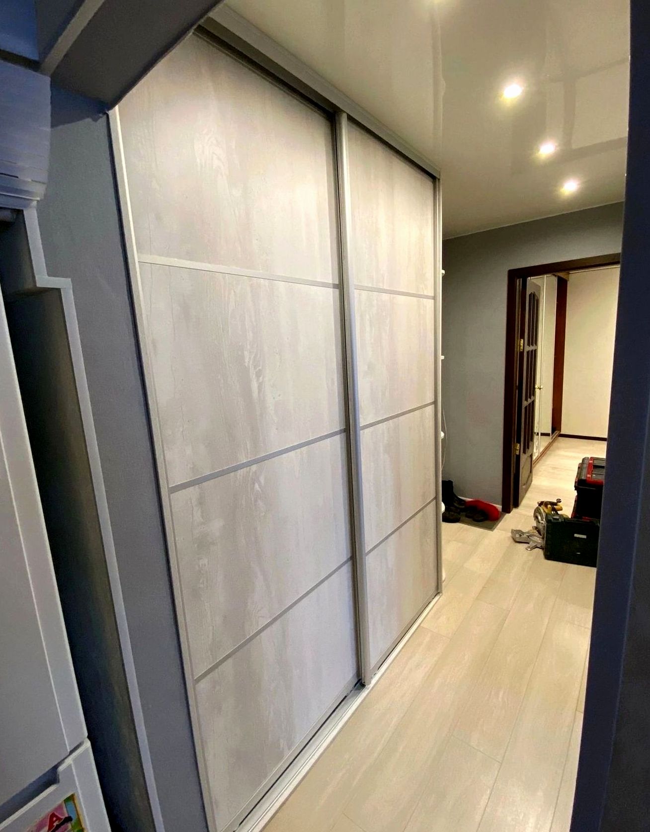 Встроенный шкаф, двери купе, наполнение: полки, штанги, антресоль. Максимум хранения без перегруза пространства, аккуратное встраивание в нишу