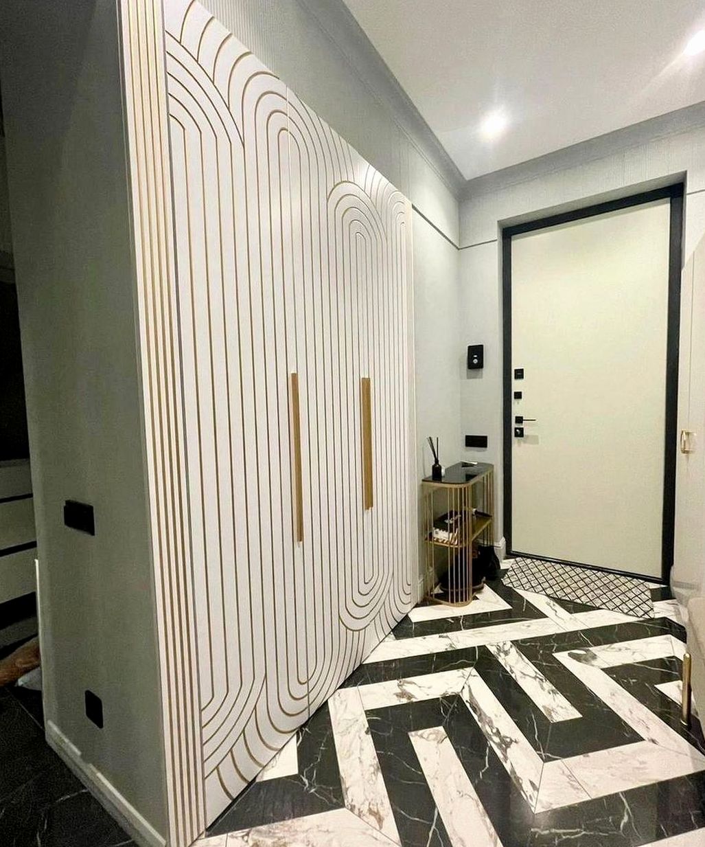 Корпусный шкаф, двери купе, наполнение: полки, штанги, ящики. Визуально расширяет пространство, сохраняет функциональность и порядок