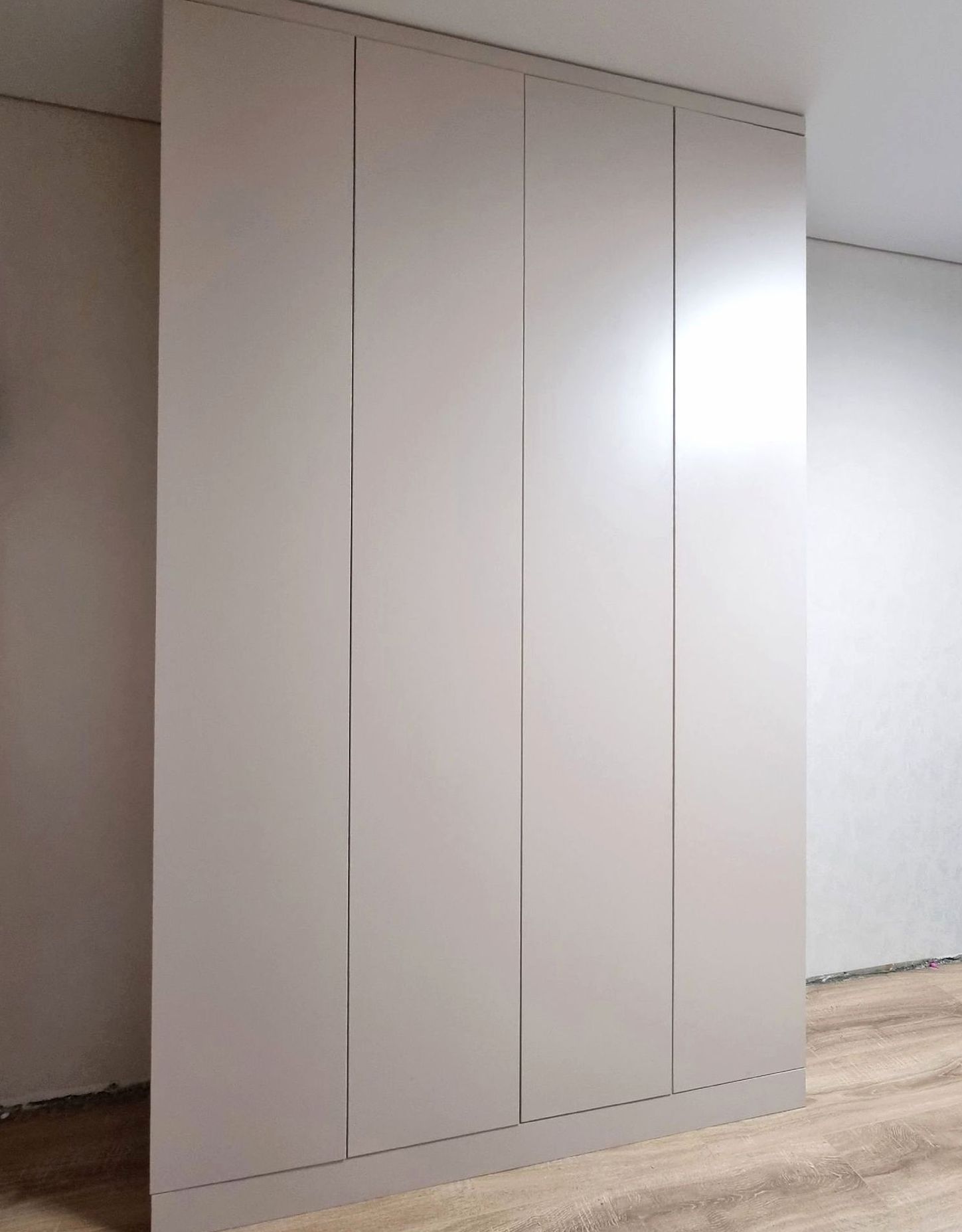 Встроенный шкаф, двери распашной, наполнение: верхняя одежда, обувные секции, антресоль. Практичное хранение для входной зоны, аккуратный и чистый вид