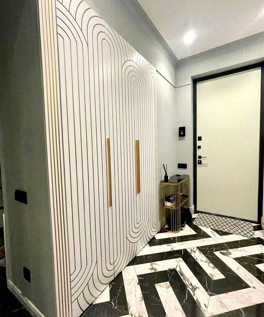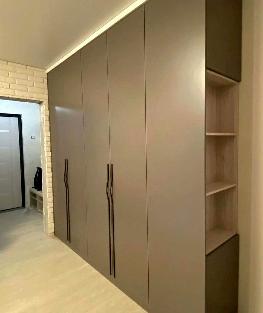 Встроенный шкаф, двери распашной, наполнение: верхняя одежда, обувные секции, антресоль. Практичное хранение для входной зоны, аккуратный и чистый вид